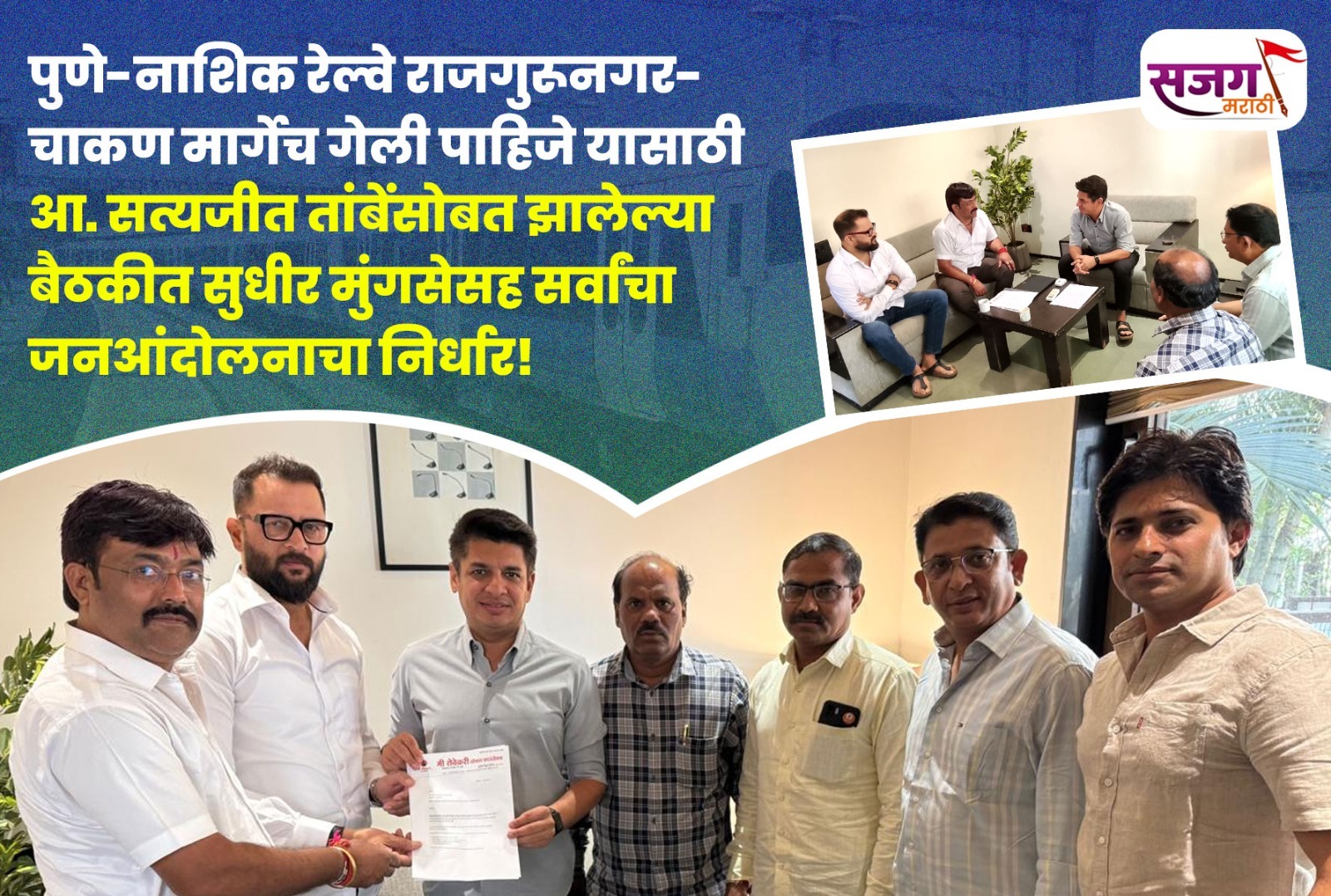 पुणे–नाशिक रेल्वे राजगुरूनगर–चाकण मार्गे सरळ जावी, या मागणीसाठी खेड तालुक्याचे युवा नेते सुधीर मुंगसे आक्रमक झाले आहेत.