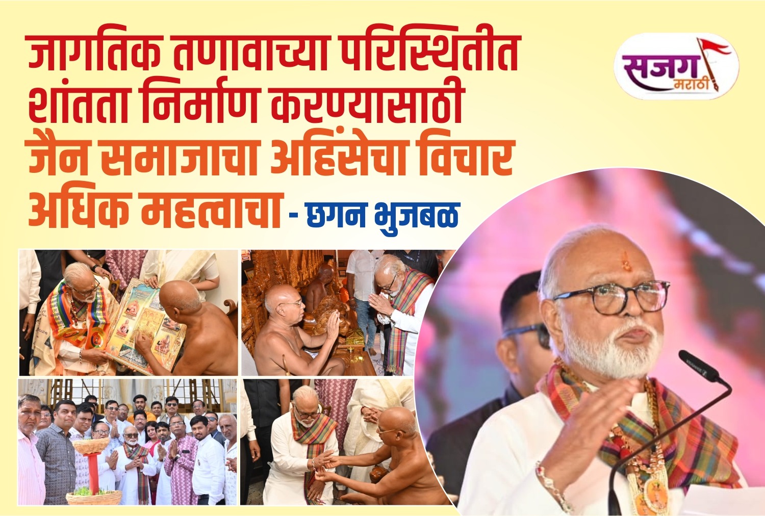 मोक्षकल्याण, विश्वशांती महायज्ञ आणि समारोप सोहळ्याच्या या पवित्र प्रसंगी मंत्री भुजबळ यांनी जैन धर्माच्या अहिंसा, सत्य, करुणा आणि संयम या मूलभूत तत्त्वांचा जगाला दिलेल्या योगदानाचा गौरव केला. त्यांनी स्पष्ट केले की, सध्या जगभरात पसरलेल्या तणावपूर्ण आणि अस्थिर वातावरणात अहिंसेचा हा विचार अधिक प्रासंगिक आणि मार्गदर्शक ठरतो. जैन समाजाचे हे योगदान विश्वशांतीसाठी अत्यंत महत्त्वाचे आहे, असे मत त्यांनी व्यक्त केले.