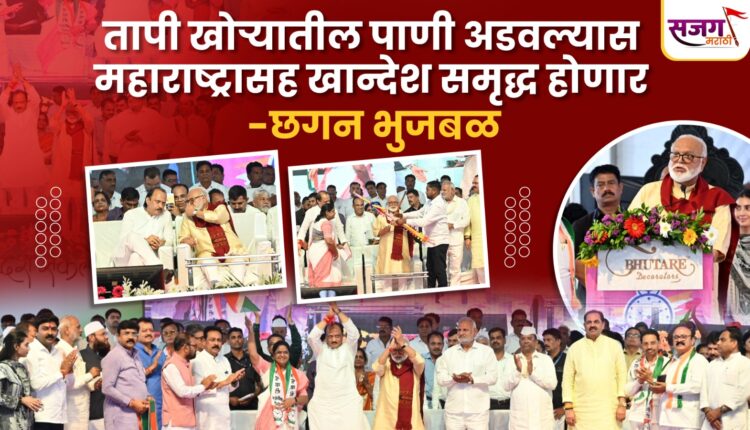जळगाव,दि.१७ ऑगस्ट :- तापी खोऱ्यातून सुमारे ११० टीएमसी पाण्यापैकी केवळ १० टीएमसी पाणी आपण अडवू शकलो आहोत. आजही ९२ टीएमसीहून अधिक पाणी हे उकई धरणात वाहून जाते आहे. हे पाणी वळविण्यासाठी उपमुख्यमंत्री अजितदादा पवार यांनी लक्ष घालावे. या ९२ टीएमसी पाण्यामुळे हा महाराष्ट्र आणि विशेषतः खान्देश हा सुजलाम सुफलाम होणार आहे, असे प्रतिपादन राज्याचे अन्न, नागरी पुरवठा व ग्राहक संरक्षण मंत्री छगन भुजबळ यांनी केले.