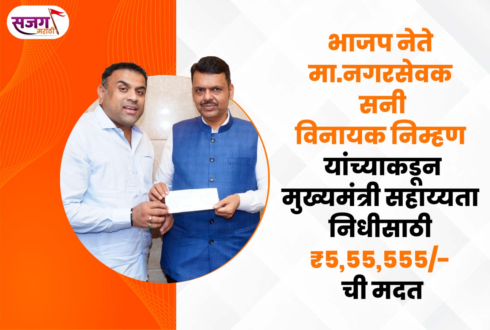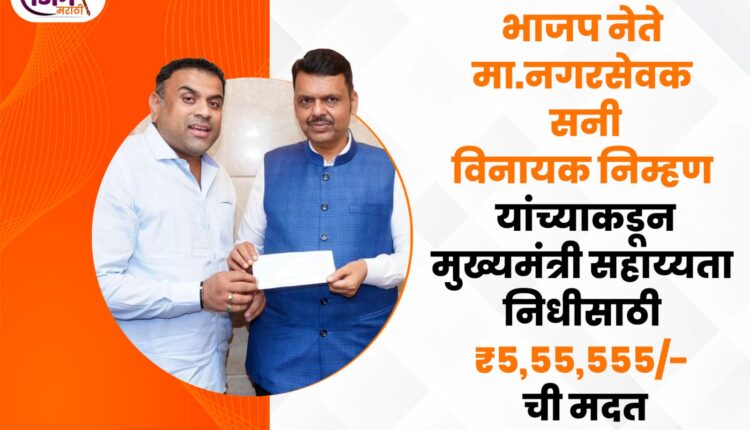 भाजप नेते, मा. नगरसेवक सनी विनायक निम्हण यांच्याकडून मुख्यमंत्री सहाय्यता निधीसाठी ₹5,55,555/- ची मदत.