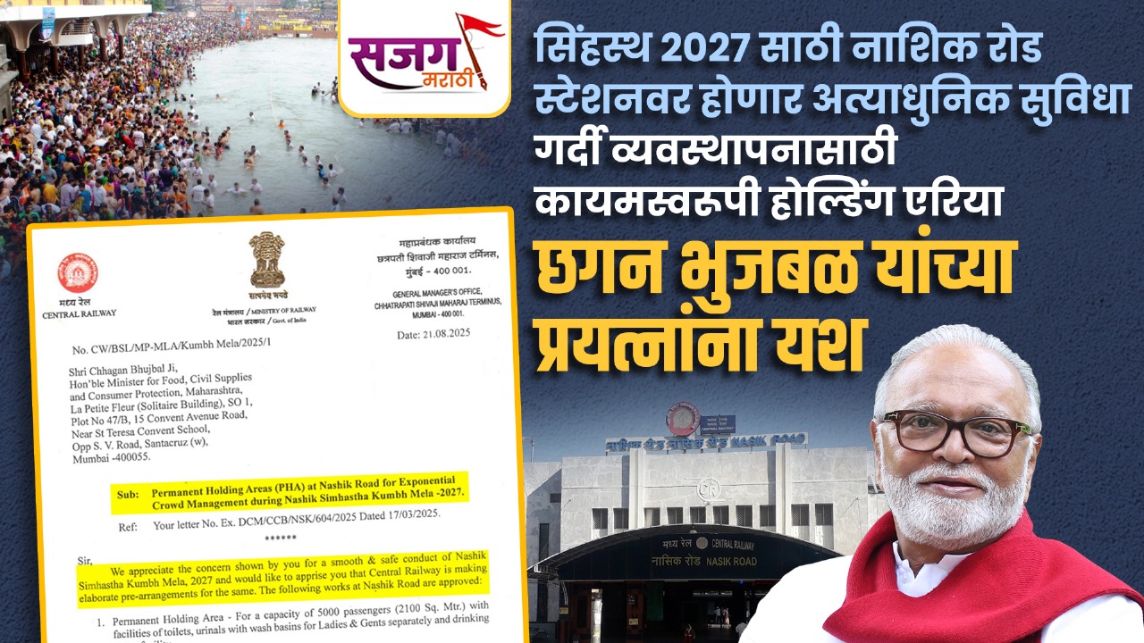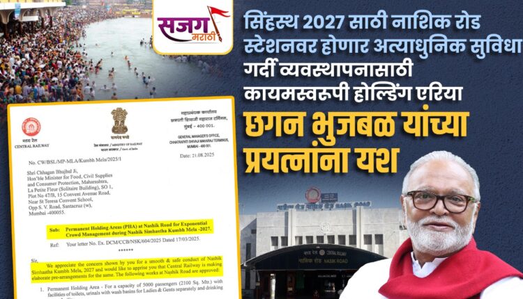 नाशिक: आगामी २०२७ मध्ये येणाऱ्या सिंहस्थ कुंभमेळ्यादरम्यान नाशिक रोड रेल्वे स्थानकावर येणाऱ्या कोट्यावधी भाविकांच्या गर्दीचे सुरक्षित व्यवस्थापन करण्यासाठी एक महत्त्वाची आणि आवश्यक पायरी म्हणून कायमस्वरूपी होल्डिंग एरिया (Permanent Holding Area – PHA) उभारण्यासाठीच्या प्रकल्पाला रेल्वे मंत्रालयाकडून अखेर मंजुरी मिळाली आहे. ही मंजुरी मिळवून देण्यासाठी राज्याचे अन्न व नागरी पुरवठा मंत्री छगन भुजबळ यांनी केलेल्या सातत्यपूर्ण प्रयत्नांना यश आले आहे असे मानले जात आहे.