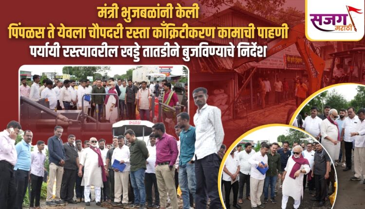 येवला ते पिंपळस रस्त्याच्या सुरू असलेल्या चौपदरी रस्त्याच्या कामाची मंत्री छगन भुजबळ यांच्याकडून पाहणी