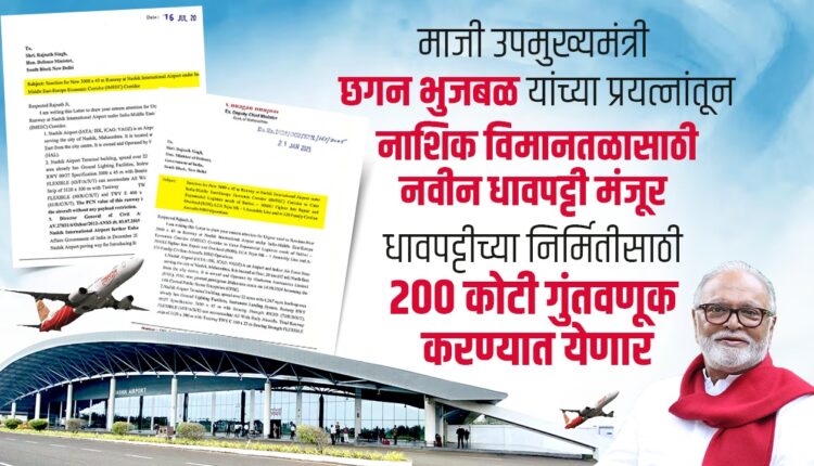 माजी उपमुख्यमंत्री छगन भुजबळ यांच्या प्रयत्नांतून नाशिक विमानतळावर होणार नवीन धावपट्टी; २०० कोटी मंजूर