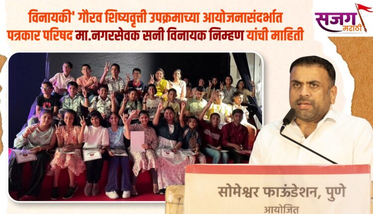 पुणे, 3 जुलै 2025 — कार्यसम्राट आमदार विनायक (आबा) निम्हण यांच्या जयंतीनिमित्त सोमेश्वर फाऊंडेशनच्या वतीने ‘विनायकी’ गौरव शिष्यवृत्ती उपक्रम राबविण्यात येत आहे. या उपक्रमाची सविस्तर माहिती देण्यासाठी पत्रकार परिषदेचे आयोजन करण्यात आले असून, शहरातील मान्यवर पत्रकारांना या बैठकीसाठी आमंत्रित करण्यात आले आहे.