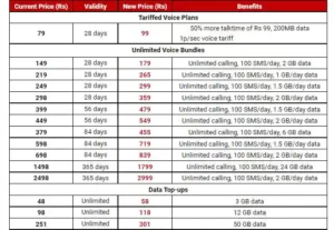 वार्षिक योजनांबद्दल, 365 दिवसांच्या वैधतेसह ₹ 1,498 प्रीपेड प्लॅनची किंमत आता ₹ 1,799 असेल आणि ₹ 2,498 ची योजना ₹ 2,999 पर्यंत वाढवण्यात आली आहे.