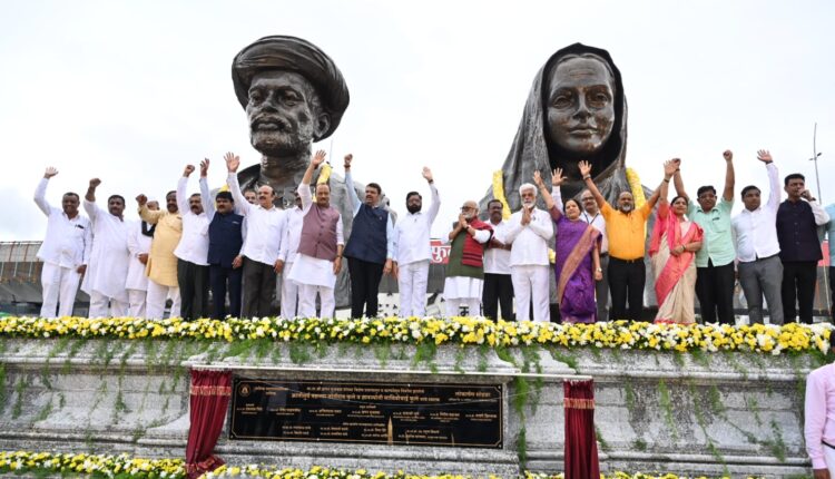 क्रांतीसूर्य महात्मा जोतीराव फुले व ज्ञानज्योती सावित्रीबाई फुले यांच्या भारतातील सर्वात मोठ्या अर्धाकृती ब्राँझ धातूच्या शिल्पाचे मुख्यमंत्री एकनाथ शिंदे यांच्या शुभहस्ते लोकार्पण