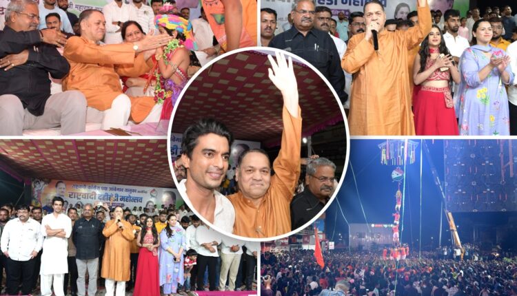राष्ट्रवादी काँग्रेस पक्षाच्या वतीने मंचर येथे आयोजित दहीहंडी उत्सव राज्याचे सहकारमंत्री ना. दिलीपराव वळसे पाटील यांच्या प्रमुख उपस्थित मोठ्या जल्लोषात साजरा करण्यात आला. यावेळी उपस्थित राहून त्यांनी सर्व गोपाळ भक्तांना दहीहंडीच्या शुभेच्छा दिल्या.