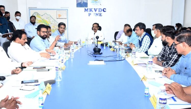सिंचनभवन पुणे येथे झालेल्या बैठकीला आ. अशोक पवार, आ.रोहित पवार, आ.अतुल बेनके, आ.संजय शिंदे, आ.बाळासाहेब आजबे, दूरदृश्य प्रणालीद्वारे आ. बबनराव पाचपुते आदी लोकप्रतिनिधी उपस्थित होते.